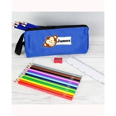 A great gift for school this Blue Monkey microfibre pencil case is personalised with any name up to 9 characters, the pencils & crayons are also personalised with this name.