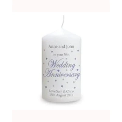 Personalise this Wedding Anniversary Candle with the couple's surname or first names up to 30 characters, an anniversary up to 30 characters (e.g. 20th, 30th) and 2 lines of text with up to 30 characters per line at the bottom of the candle.