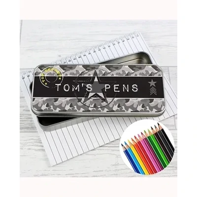 This Army Camo Pencil Tin with Crayons is an ideal place for him to keep his stationery safe.