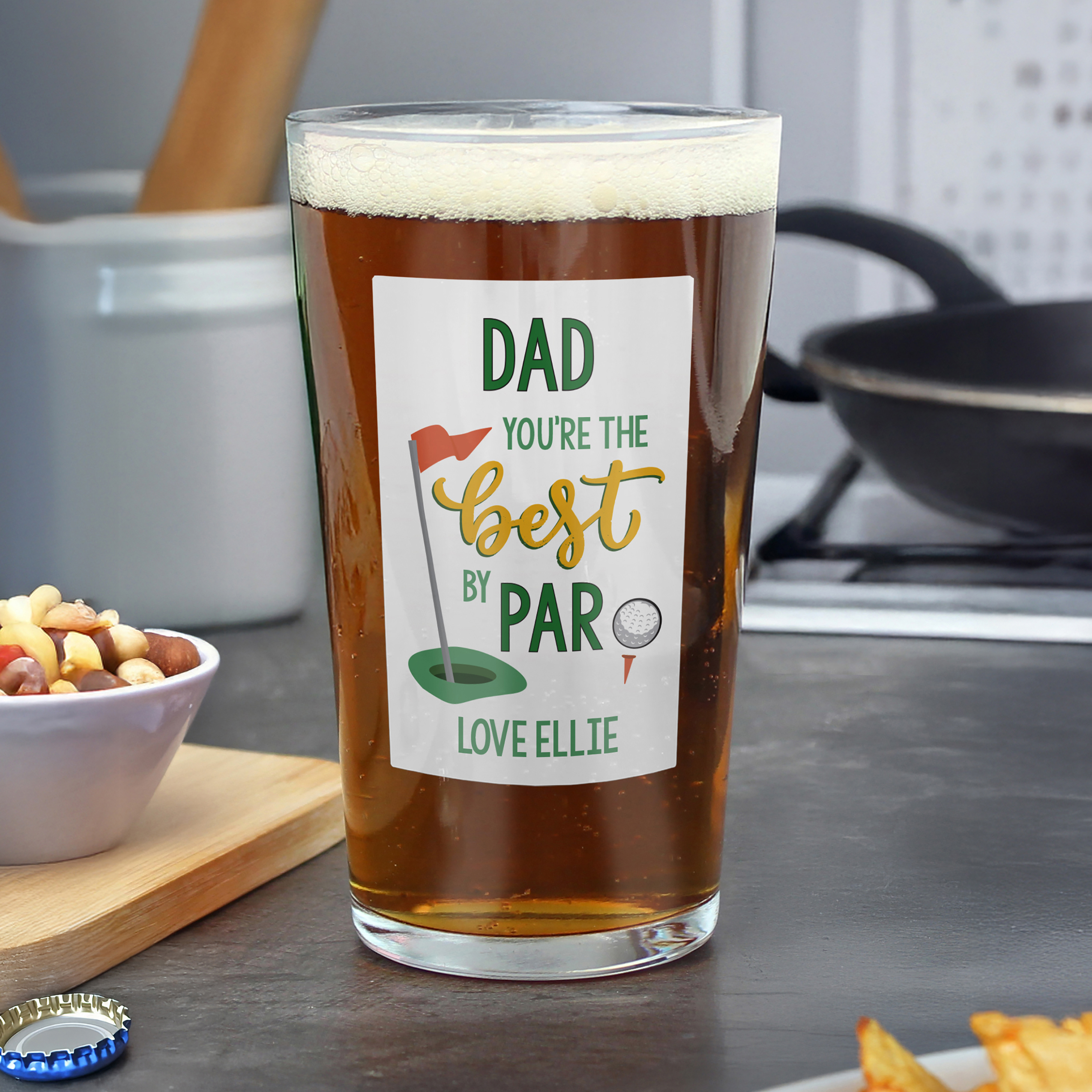 Featuring a bold golf-themed design and the fixed phrase "You're the Best by Par," this glass makes a thoughtful gift for birthdays, Father's Day, or any special occasion.