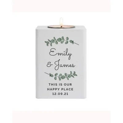 This gorgeous Personalised Botanical White Wooden Tea Light Holder is a fantastic gift for any occasion.