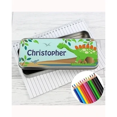 Our adorable Dinosaur Pencil Tin with Crayons is ideal for any little boy as a back to school, Birthday or a Christmas gift.