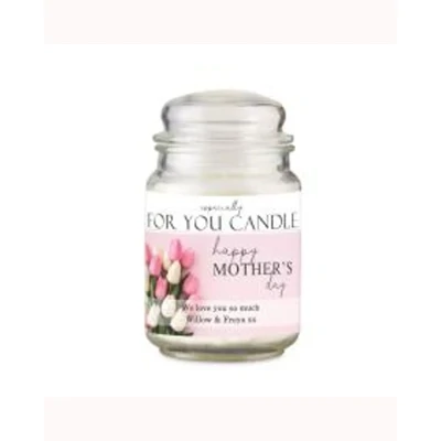 Please note, the text 'especially for you candle' and 'Happy Mother's Day' is fixed and cannot be amended.
