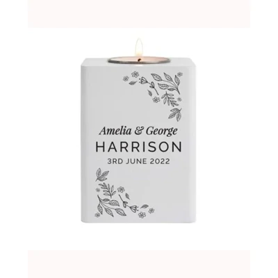 This gorgeous personalised white wooden tea light holder is a fantastic gift for any occasion.