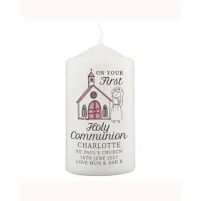 Personalised Girls First Holy Communion Pillar Candle