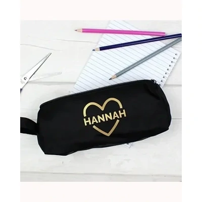 This stylish Personalised Gold Heart Pencil Case is prefect for keeping all of your favourite stationary safe.Personalise this pencil case with a name up to 12 characters.Please note the text will appear in fixed upper case.No contents included.