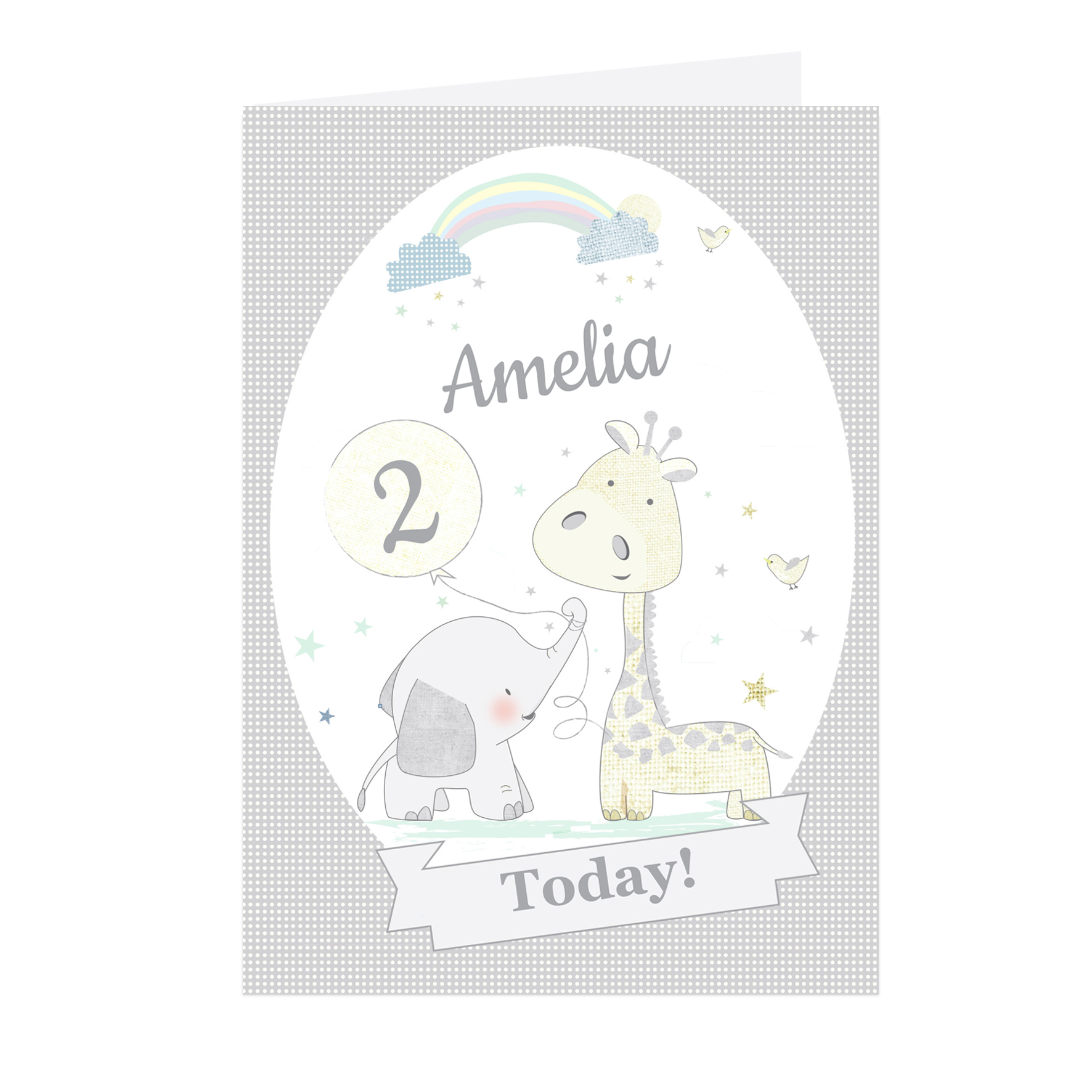 Personalise the front of this card with a name up to 12 characters and an age up to 2 characters in length. You can then add a message to the inside of the card over 5 lines of 25 characters per line.