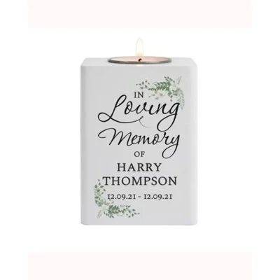 This white wooden tea light holder is a beautiful way to honour and memorialise the life of a lost loved one.