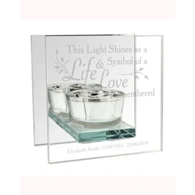 This Personalised Life & Love Mirrored Glass Tea Light Holder is an elegant way to remember a dearly missed family member or friend.