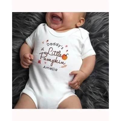 This adorable Personalised Little Pumpkin 0-3 Months Baby Vest is a perfect gift for their first Halloween