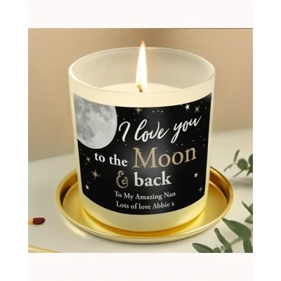 Our personalised moon & back scented jar candle is a modern take on a romantic sentiment! Depicting a stylised moon and stars, it's a subtle design for both men and women.