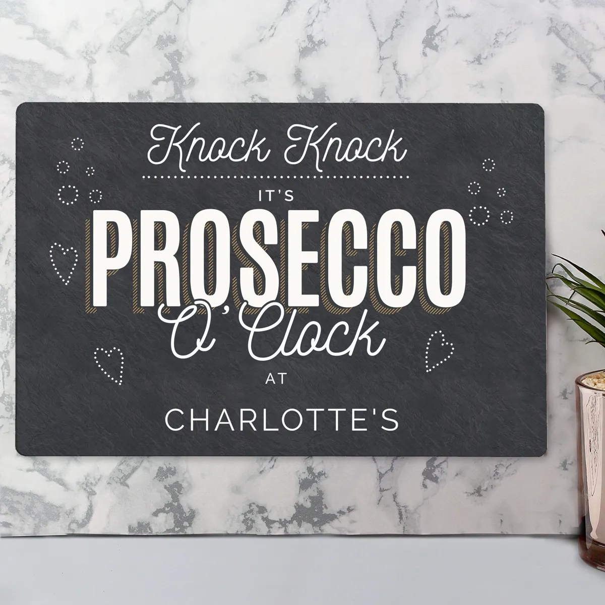 Knock knock it's prosecco o'clock at is fixed text and cannot be changed.