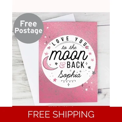 This beautiful Personalised Moon and Back Card is a feminine twist on the popular sentiment.