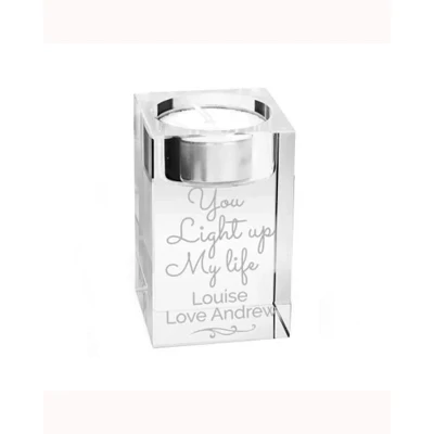 Personalise this 'You light up my life' Tea Light Holder with 2 lines, with up to 15 characters per line. All personalisation is case sensitive and will appear as entered.