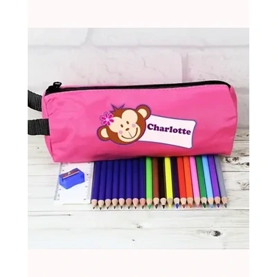 A great gift for school this Pink Monkey microfibre pencil case is personalised with any name up to 9 characters, the pencils & crayons are also personalised with this name.